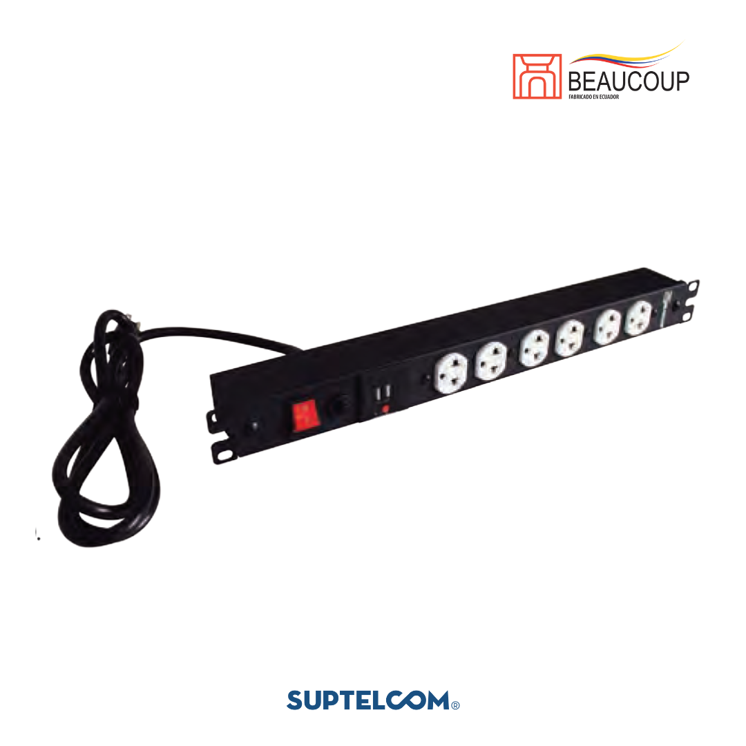 La multitoma horizontal I-1135 de Beaucoup es una unidad de distribución de energía (PDU) básica diseñada para montaje estándar en racks de 19 pulgadas. Este modelo integra cuatro módulos de tomas dobles, permitiendo la conexión de hasta ocho dispositivos simultáneamente. Su construcción está orientada a la durabilidad y seguridad, proporcionando una solución eficiente para centralizar la alimentación eléctrica en infraestructuras de red pequeñas y medianas.