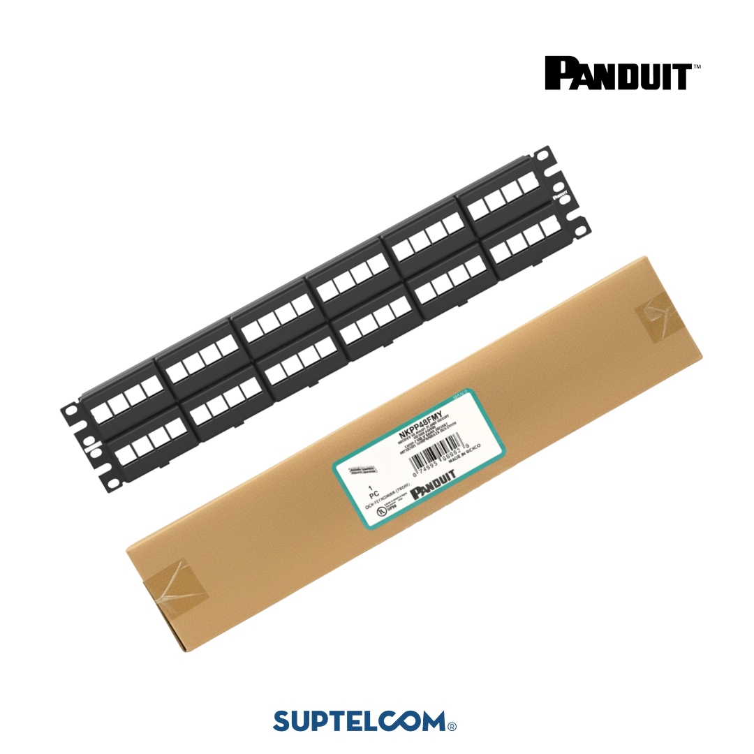 - Flexibilidad Modular: Admite todos los módulos jack Keystone Panduit NetKey® (Cat5e, Cat6, Cat6A).
